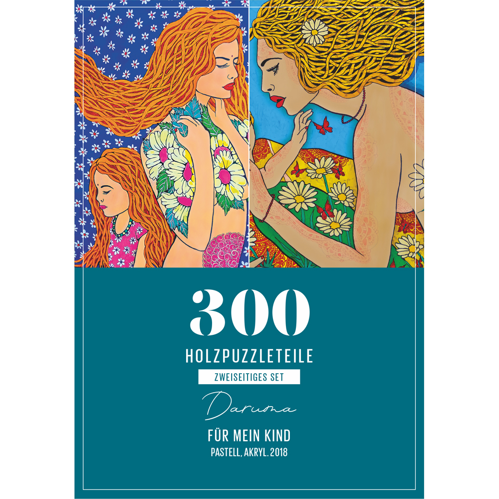 "Für mein Kind (Zweiseitiges Set). Kollektion Nr. 2. KünstlerIn Daruma. Pastell, Akryl, 2018.Die zweiseitigen DaVici Puzzles sind etwas ganz Besonderes! Hier hat man zwei Motive in einem Puzzle. Du kannst entscheiden, welches Bild du zuerst puzzeln möchtest. Durch die beidseitige Bedruckung ist es gar nicht so einfach, die richtigen Teile zu finden. Doppeltes Motiv - Doppelte Knobelei - Doppelter Spaß! .DAVICI ist der aus Russland stammende Vorreiter im Bereich von Holzpuzzles mit fantasie-vollen Formen. Wie ein Buch erzählt die Box in deinen Händen die Geschichte der Kunstwerke mit Helden, Märchen und rätselhaften Handlungen. DaVICI steht für einzigartige Puzzles aus hochwertigem Birkenholz mit extravaganten Formen und Liebe zum Detail. Durch präzises Laserschneiden passen die aufwendig geformten Teile perfekt ineinander. In dieser Welt der Puzzles erwachen Menschen, Vögel und wilde Tiere, Könige und Wanderer, Sterne und Plane-ten zum Leben. Die Motive der Puzzles basieren auf Gemälden großer russischer Künstler. Das Gemälde des Künstlers ergibt in Kombination mit den Puzzleteilen, die auf die Geschichte des Autors abgestimmt sind, ein vollkommenes Meisterwerk. Beim Zusammensetzen der intellek-tuellen DAVICI Puzzles tauchst Du in eine erstaunliche Welt voller Illusionen, Geheimnisse und Mysterien ein. Ein haptisches Vergnügen mit großartigen Details und angenehmem Duft nach Holz. Die Puzzles von DAVICI schaffen wundervolle Erinnerungen und kostbare Gefühle, und beleben etwas, das wirklich wertvoll ist."