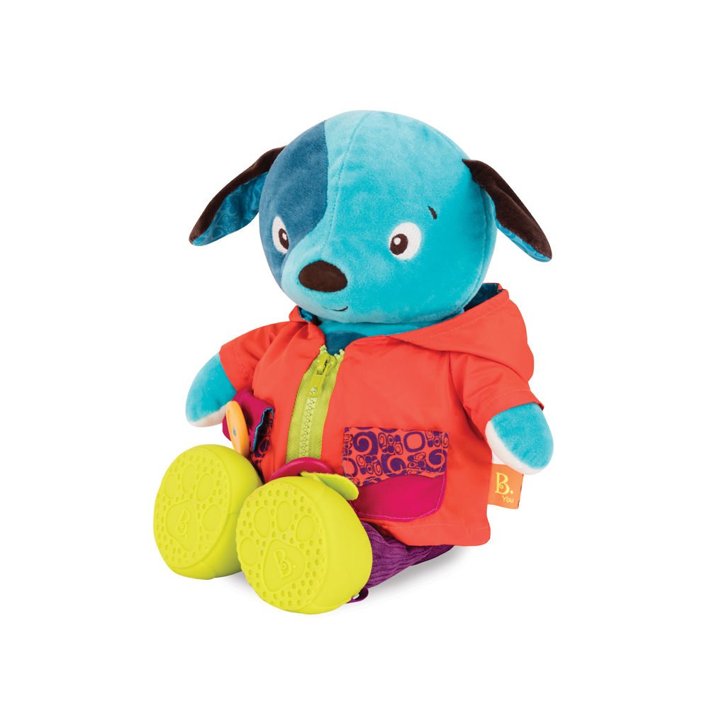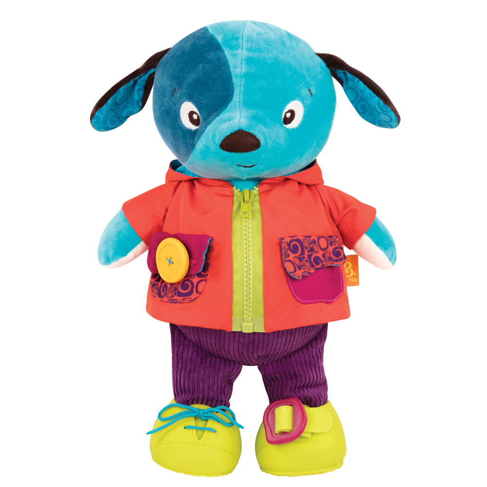 Der kuschelweiche Lernhund von B. Toys hilft Ihrem Kind zu verstehen, welches Kleidungsstk welche Funktion hat und wie es an- und ausgezogen wird. Schleife, Knfe, Klett und Reierschluss, was jedes Kind erst lernen muss, t sich toll am lustigen Kuschelhund, dann ist es nur noch halb so schwer! Die Feinmotorik wird ebenso gefdert. Lustiges Extra: Drkt man auf den Bauch des Hundes, reagiert er mit Bewegungen und Lachen.