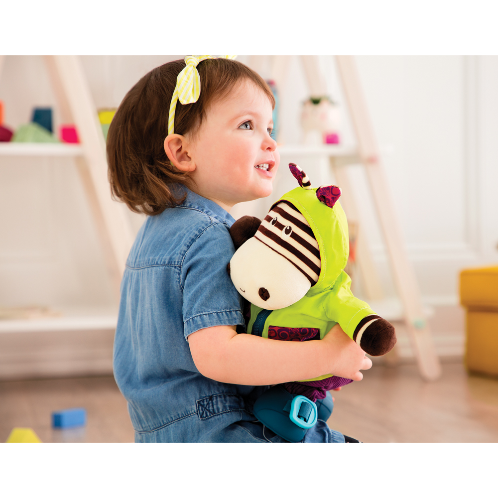 Der kuschelweiche Lernzebra von B. Toys hilft Ihrem Kind zu verstehen, welches Kleidungsstk welche Funktion hat und wie es an- und ausgezogen wird. Schleife, Knfe, Klett und Reierschluss, was jedes Kind erst lernen muss, t sich toll am lustigen Kuschelzebra, dann ist es nur noch halb so schwer! Die Feinmotorik wird ebenso gefdert. Lustiges Extra: Drkt man auf den Bauch des Zebras, reagiert es mit Bewegungen und Lachen.