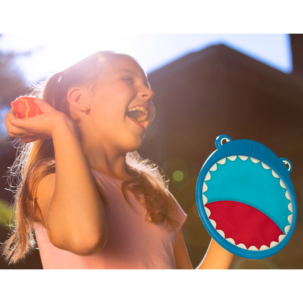Werfen, fangen, freilassen! Mit Finley dem Hai und dem lustigen kleinen Fisch wird dieses Fangspiel zur coolen Aktiv-Challenge f Kinder ab 3 Jahren. Die Schler mit verstellbaren Riemen passen prima er kleine Kinderhde und sorgen nicht nur f fantastischen Spielspa sondern verbessern auch die Auge-Hand-Koordination! Ein tolles Spiel f den eigenen Garten, den Park, den Strand ...
