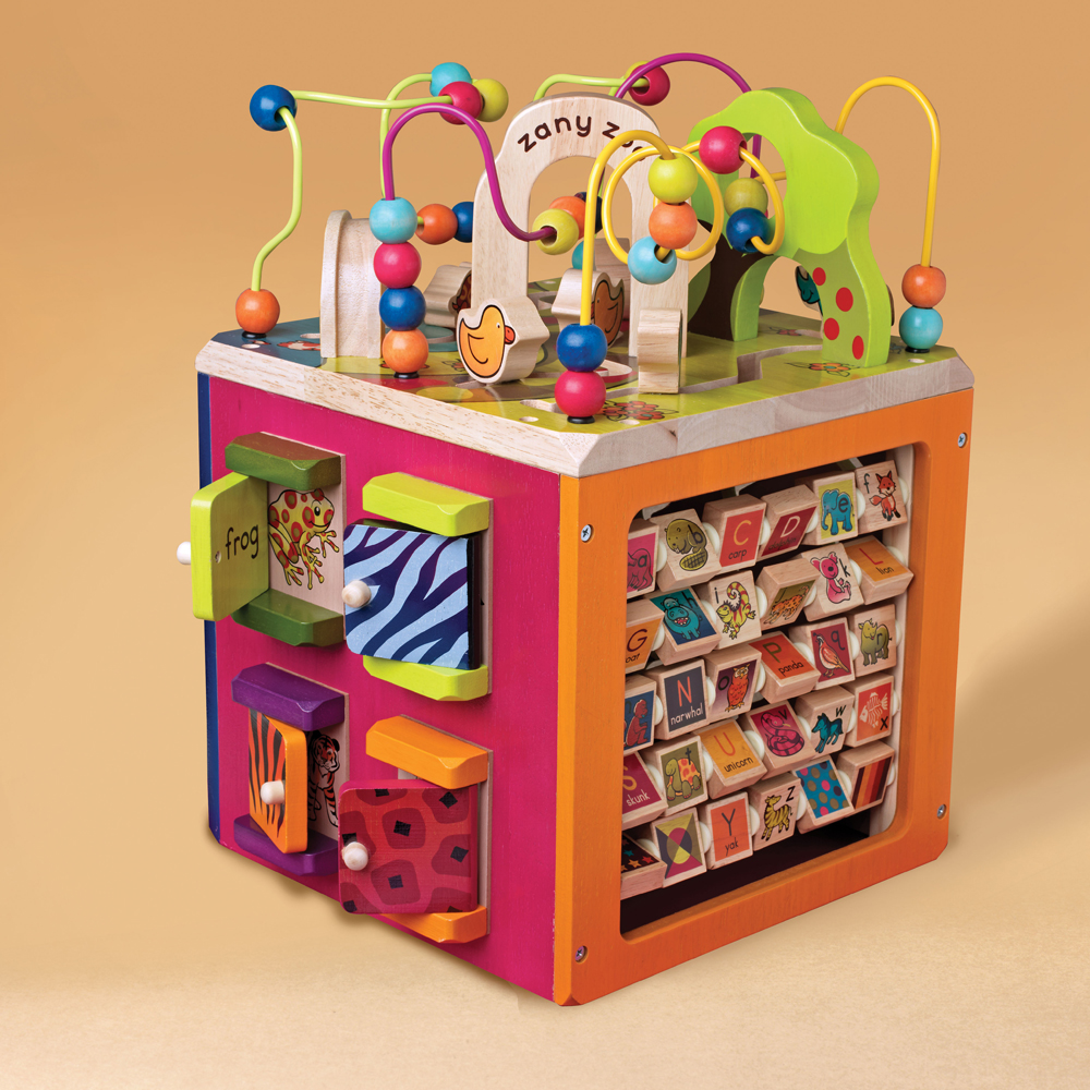 Dieser Spielewfel wurde aus bestdigem Qualitsholz handgearbeitet und leuchtet in prhtigen Farben. Man kann Ten fnen, wundersch illustrierte Tiere von A bis Z entdecken, den gewundenen Bahnen folgen, die Zick-Zack Pfade auf- und abrennen oder die Kreisel drehen. Der Motorikwfel Zany Zoo wird bestimmt die Neugier Ihres Kindes wecken. Auf den ff spielbaren Seiten des Wfels gibt es eine Menge zum Entdecken und vor allem Ausprobieren. erall lassen sich die verschiedenen Elemente drehen und bewegen und auf der Oberseite befindet sich eine tolle Motorikschleife. Aurdem sind dort in bunten Farben verschiedene Tiere zu sehen. Der Wfel bietet richtig viel Abwechslung, so kann Ihr Kind beispielsweise auch die Tierelemente die Zickzack-Pfade entlangziehen. Von 5 Seiten bespielbar