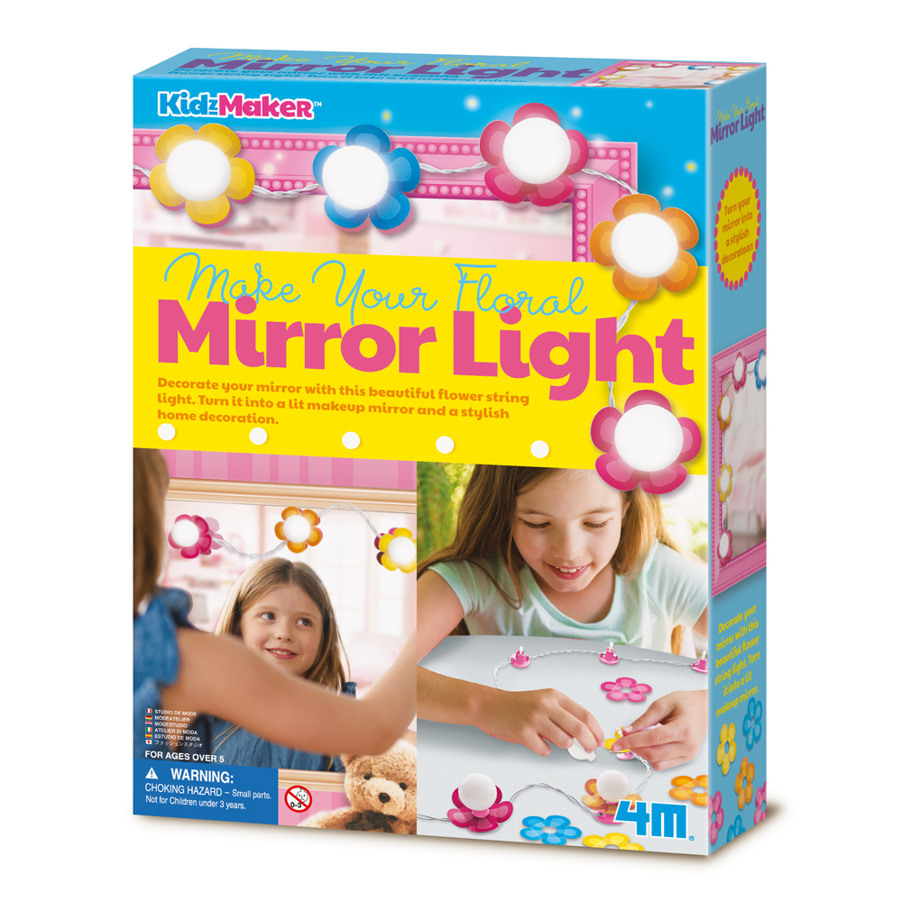 Das Make Your Floral Mirror Light Kit von KidzMaker entht alles, was du brauchst, um 8 batteriebetriebene LED-Blumenlichter zu basteln und zusammenzusetzen. Mit bunten, faltbaren 3D-Blumen und einer 1 Meter langen Lichterkette ist es eine spage Mlichkeit, deine Kreativit zu zeigen und einen Spiegel oder Bilderrahmen zu dekorieren. Geeignet f Kinder ab 5 Jahren.