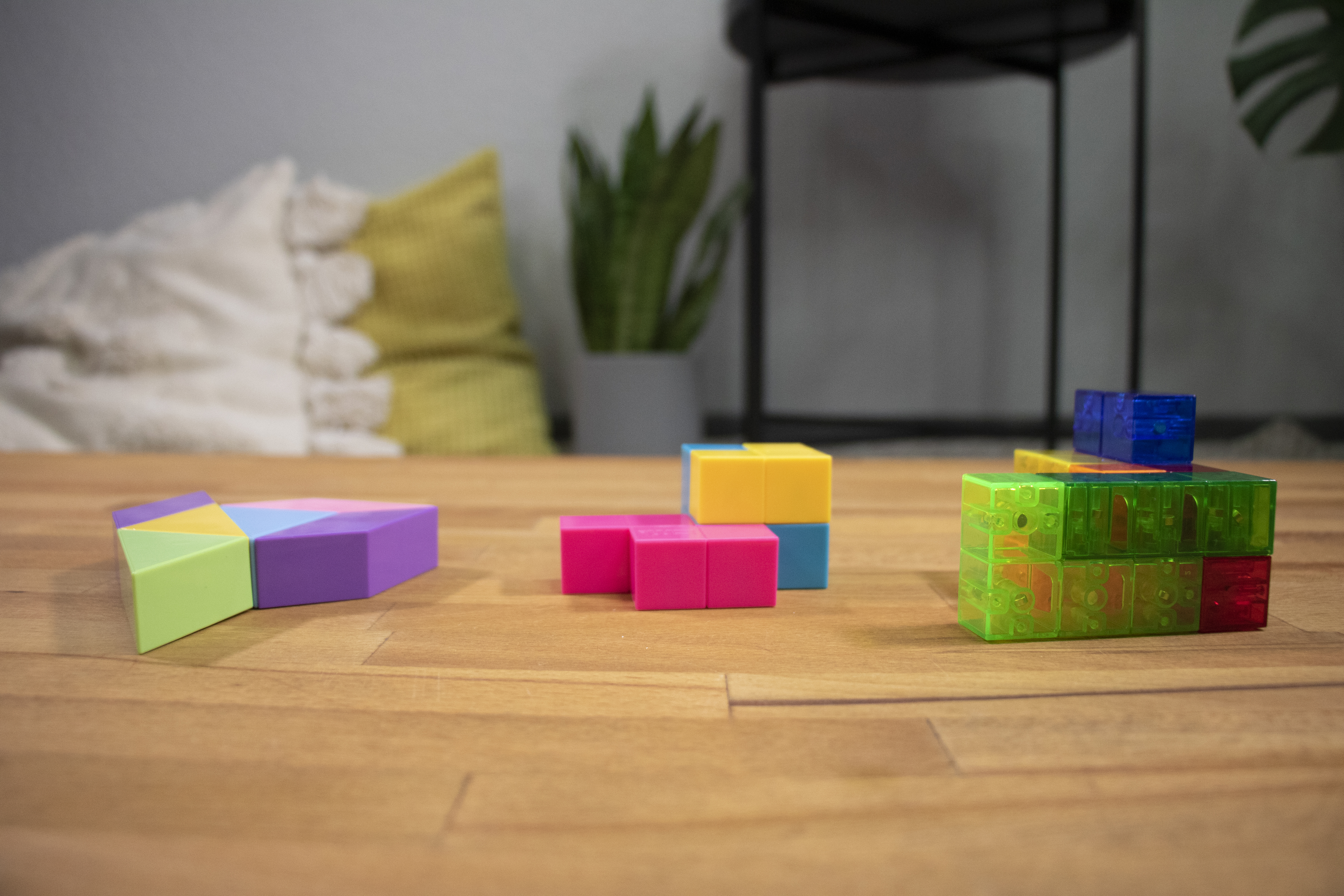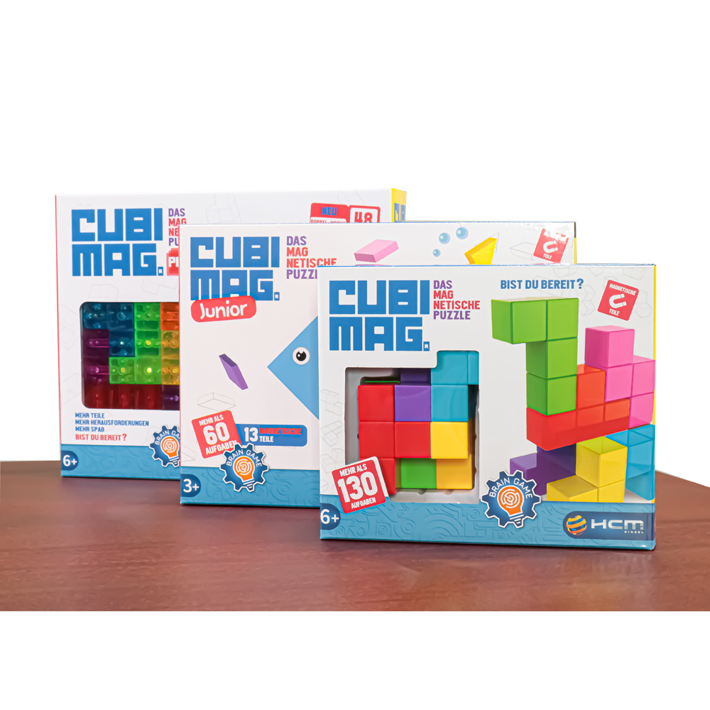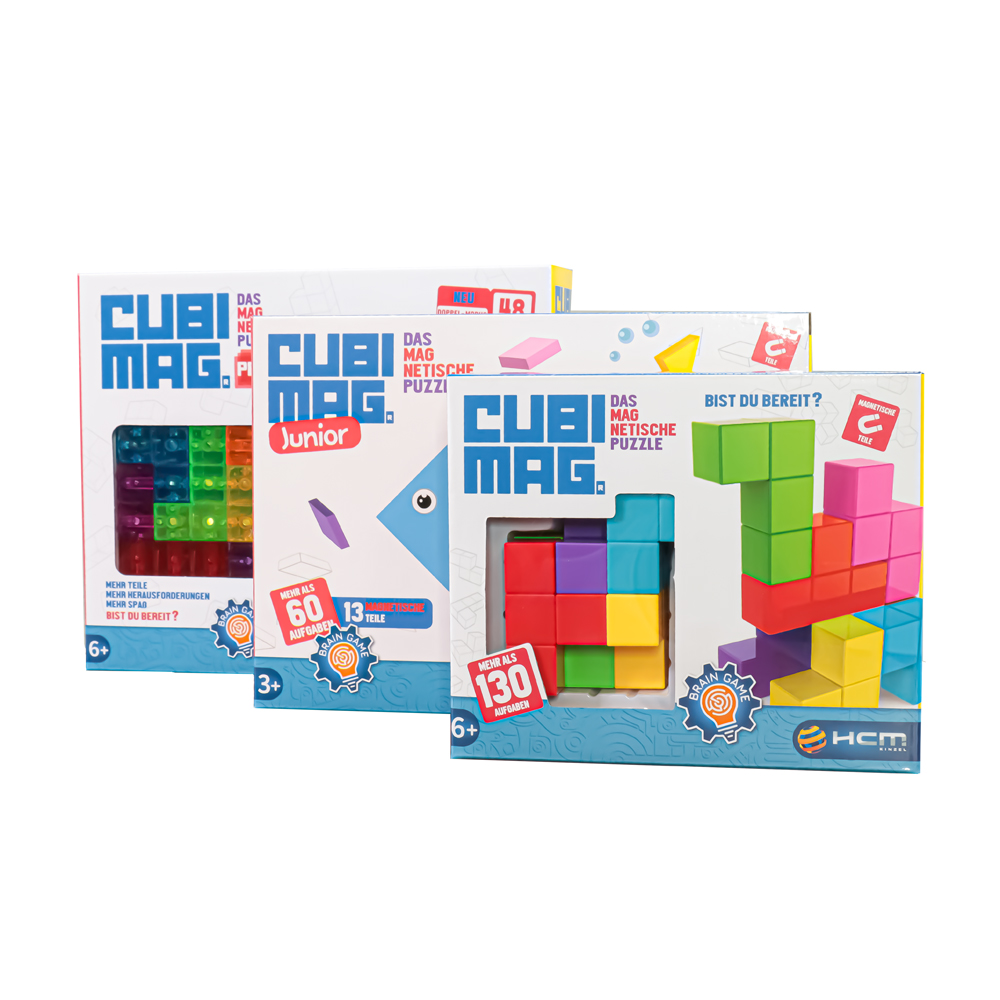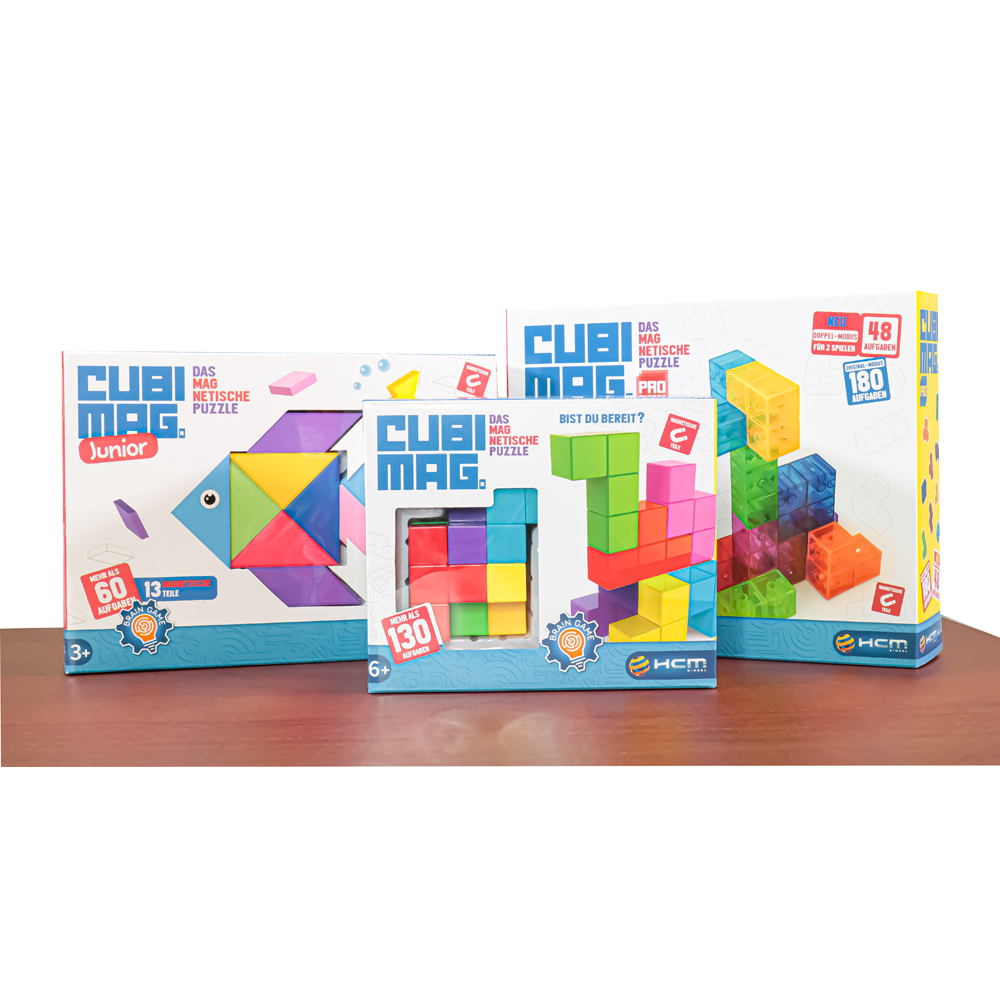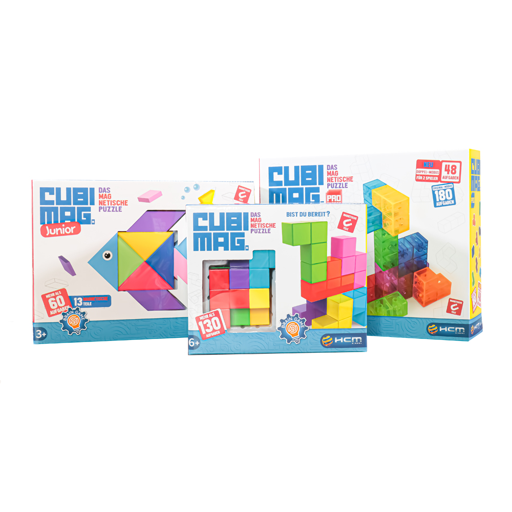 Cubimag PRO, die neue und erweiterte Variante von Cubimag, bietet faszinierendes 3D Puzzeln f alle Puzzleliebhaber. Die integrierten Magnete halten die bunten Puzzleteile in unterschiedlichen Formen und Farben wie durch Zauberhand zusammen. Auf kreative Weise forderst und fderst du mit dem magnetischen Puzzle logisches und rmliches Denken, wrend du dich er 180 spannenden Herausforderungen stellst. Mit mehr Teilen, mehr Herausforderungen und einem neuen Zwei-Spieler-Modus. Im coolen Cubimag PRO Doppelmodus kannst du gegen deine Freunde antreten. Wer von euch holt sich wohl den Sieg? 1. Wle eine Aufgabe aus dem Buch - Es gibt drei Stufen: leicht, mittel und fortgeschritten. 2. Wle, die f diese Herausforderung erforderlichen magnetischen Puzzleteile aus. Diese werden unter jeder Aufgabe angezeigt. 3. Le die Aufgabe alleine, oder duelliere dich mit einem Mitspieler. Euer Ergebnis knt ihr mit den Lungen am Ende des Buches erpren.