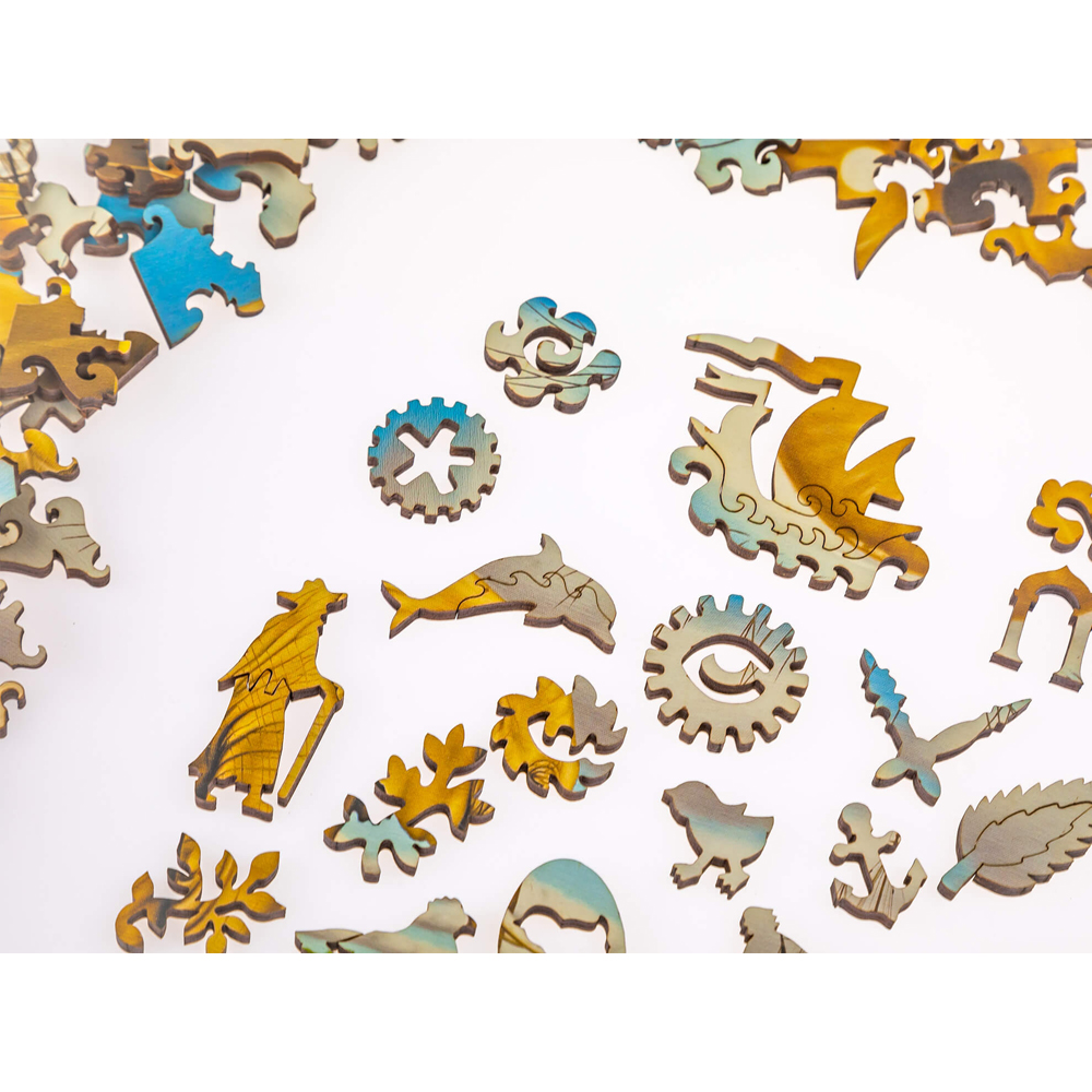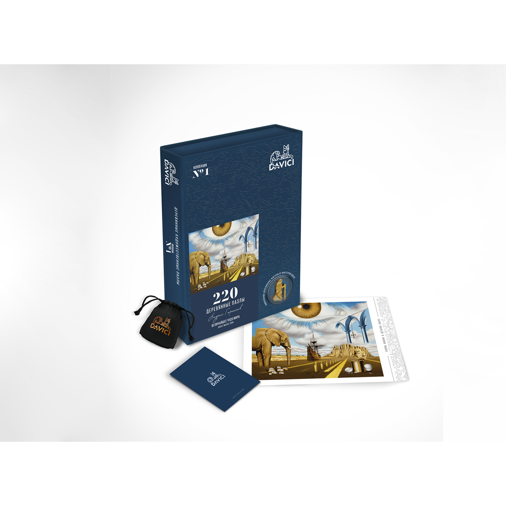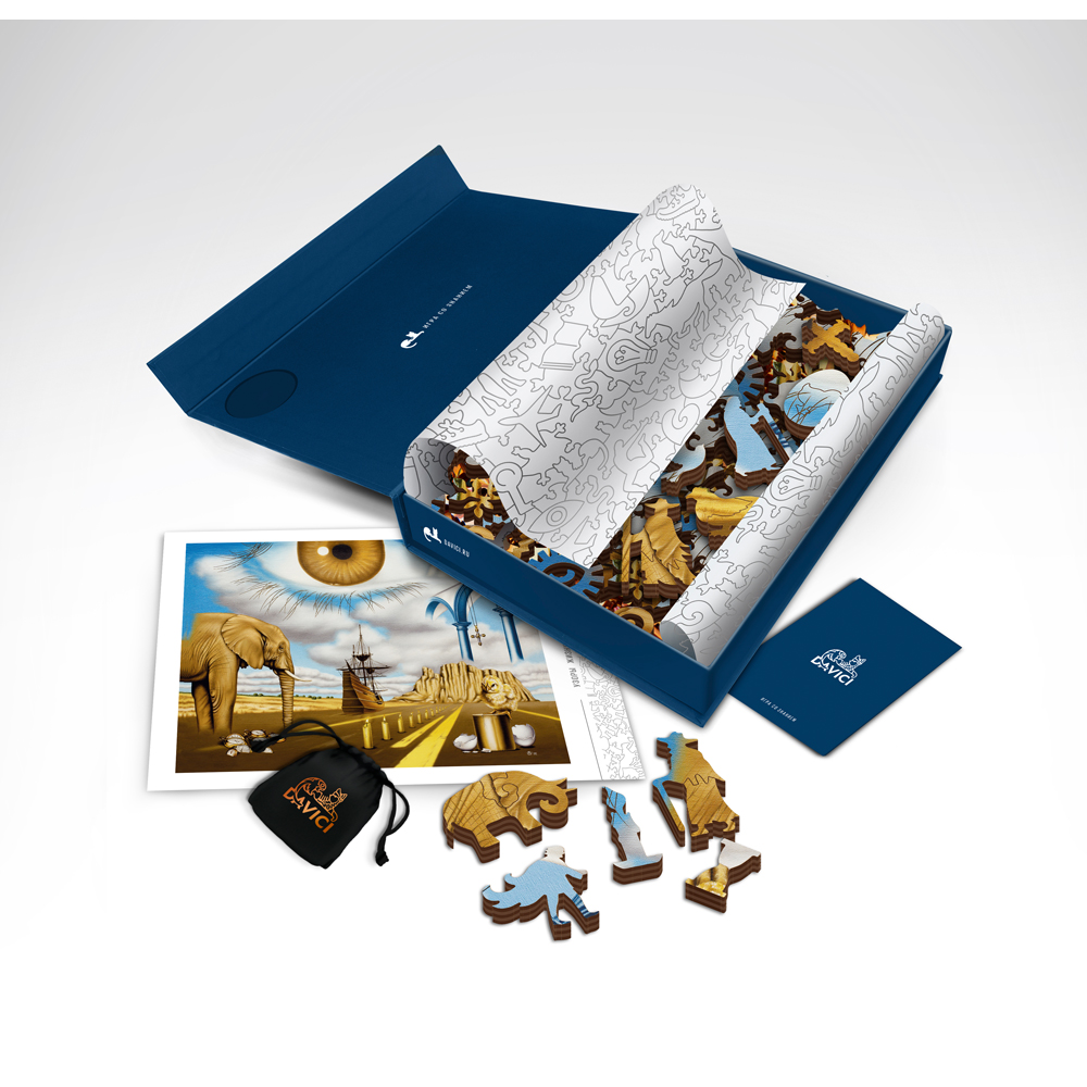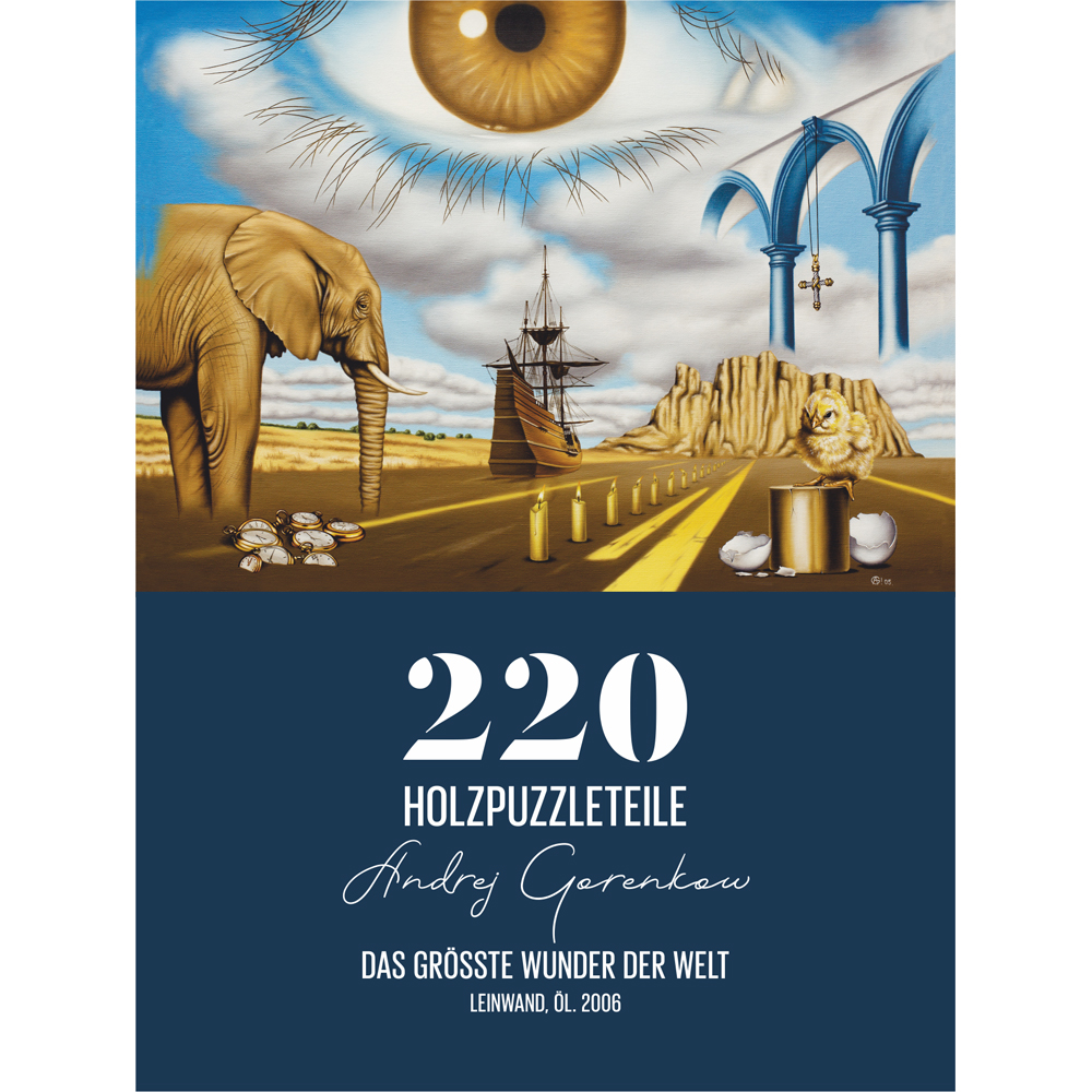 "Das größte Wunder der Welt. Kollektion Nr. 1. KünstlerIn Andrej Gorenkow. Leinwand, Öl, 2006 DAVICI ist der aus Russland stammende Vorreiter im Bereich von Holzpuzzles mit fantasie-vollen Formen. Wie ein Buch erzählt die Box in deinen Händen die Geschichte der Kunstwerke mit Helden, Märchen und rätselhaften Handlungen. DaVICI steht für einzigartige Puzzles aus hochwertigem Birkenholz mit extravaganten Formen und Liebe zum Detail. Durch präzises Laserschneiden passen die aufwendig geformten Teile perfekt ineinander. In dieser Welt der Puzzles erwachen Menschen, Vögel und wilde Tiere, Könige und Wanderer, Sterne und Plane-ten zum Leben. Die Motive der Puzzles basieren auf Gemälden großer russischer Künstler. Das Gemälde des Künstlers ergibt in Kombination mit den Puzzleteilen, die auf die Geschichte des Autors abgestimmt sind, ein vollkommenes Meisterwerk. Beim Zusammensetzen der intellek-tuellen DAVICI Puzzles tauchst Du in eine erstaunliche Welt voller Illusionen, Geheimnisse und Mysterien ein. Ein haptisches Vergnügen mit großartigen Details und angenehmem Duft nach Holz. Die Puzzles von DAVICI schaffen wundervolle Erinnerungen und kostbare Gefühle, und beleben etwas, das wirklich wertvoll ist."