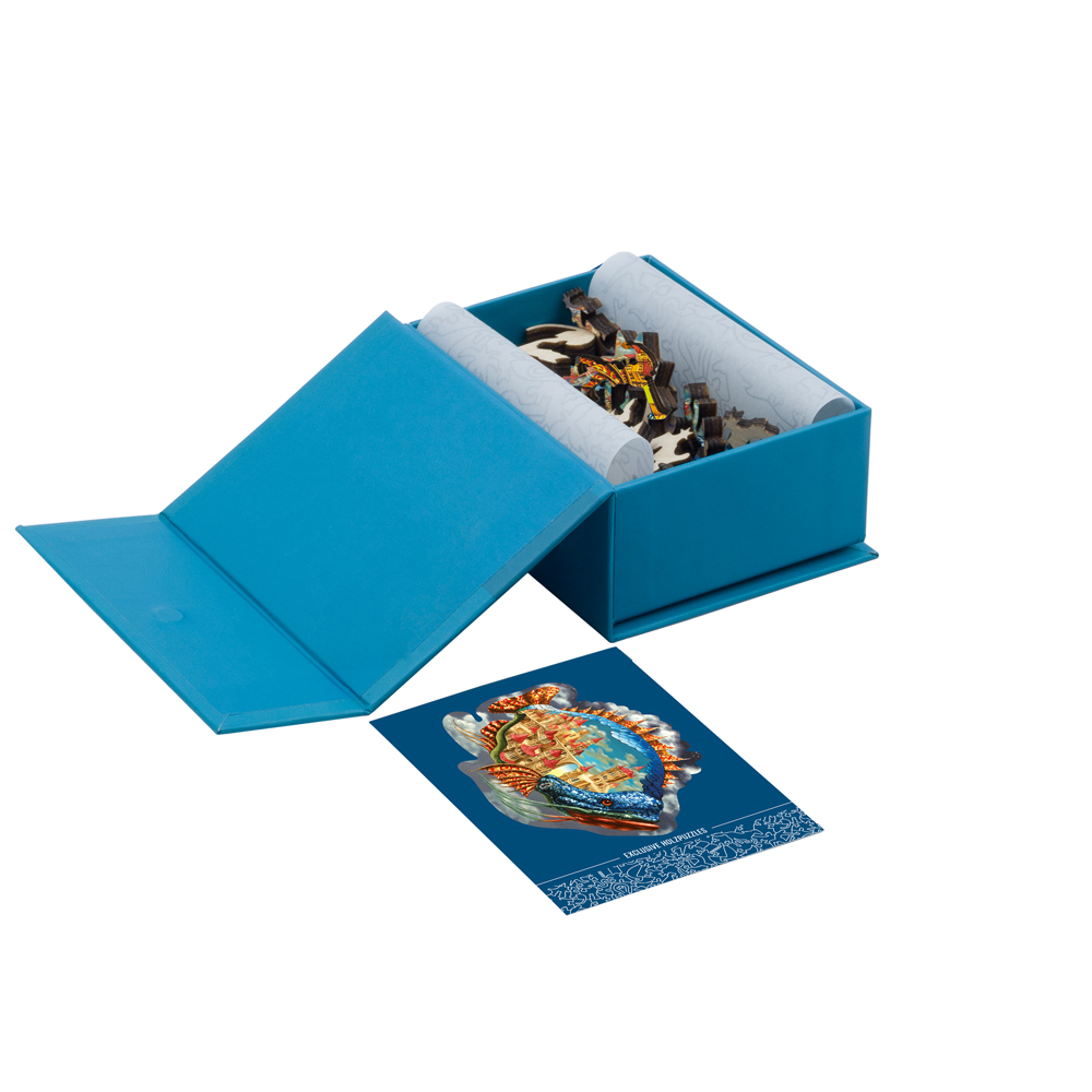 Der Stadtfisch. Display Kollektion 2. KstlerIn Viktor Molew. Leinwand, . 2015 DAVICI ist der aus Russland stammende Vorreiter im Bereich von Holzpuzzles mit fantasie-vollen Formen. Wie ein Buch erzlt die Box in deinen Hden die Geschichte der Kunstwerke mit Helden, Mchen und rselhaften Handlungen. DaVICI steht f einzigartige Puzzles aus hochwertigem Birkenholz mit extravaganten Formen und Liebe zum Detail. Durch prises Laserschneiden passen die aufwendig geformten Teile perfekt ineinander. In dieser Welt der Puzzles erwachen Menschen, Vel und wilde Tiere, Kige und Wanderer, Sterne und Plane-ten zum Leben. Die Motive der Puzzles basieren auf Gemden gror russischer Kstler. Das Gemde des Kstlers ergibt in Kombination mit den Puzzleteilen, die auf die Geschichte des Autors abgestimmt sind, ein vollkommenes Meisterwerk. Beim Zusammensetzen der intellek-tuellen DAVICI Puzzles tauchst Du in eine erstaunliche Welt voller Illusionen, Geheimnisse und Mysterien ein. Ein haptisches Vergnen mit grortigen Details und angenehmem Duft nach Holz. Die Puzzles von DAVICI schaffen wundervolle Erinnerungen und kostbare Gefle, und beleben etwas, das wirklich wertvoll ist.