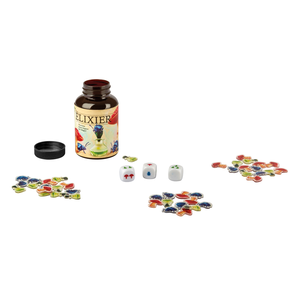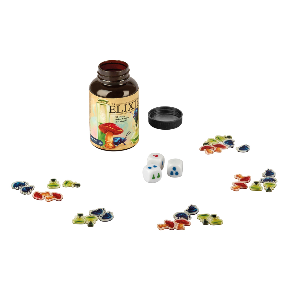 erliste deine Gegner mit Magie In einem Spiel zwischen Verstand und Bluff treten Alchemisten gegeneinander an. Die Aufgabe ist es, die Zutaten so schnell es geht loszuwerden, um die Kontrolle er das Elixier zu ernehmen. Sieh dir deine Mitspieler, ihre Gesichter und Bewegungen genau an - wer wird sich in diesem einzigartigen und originellen Spiel durchsetzen? Mit der einzigartigen Verpackung und schnellen Spielmechanik wird es Spielern und Familien viel Freude bereiten.