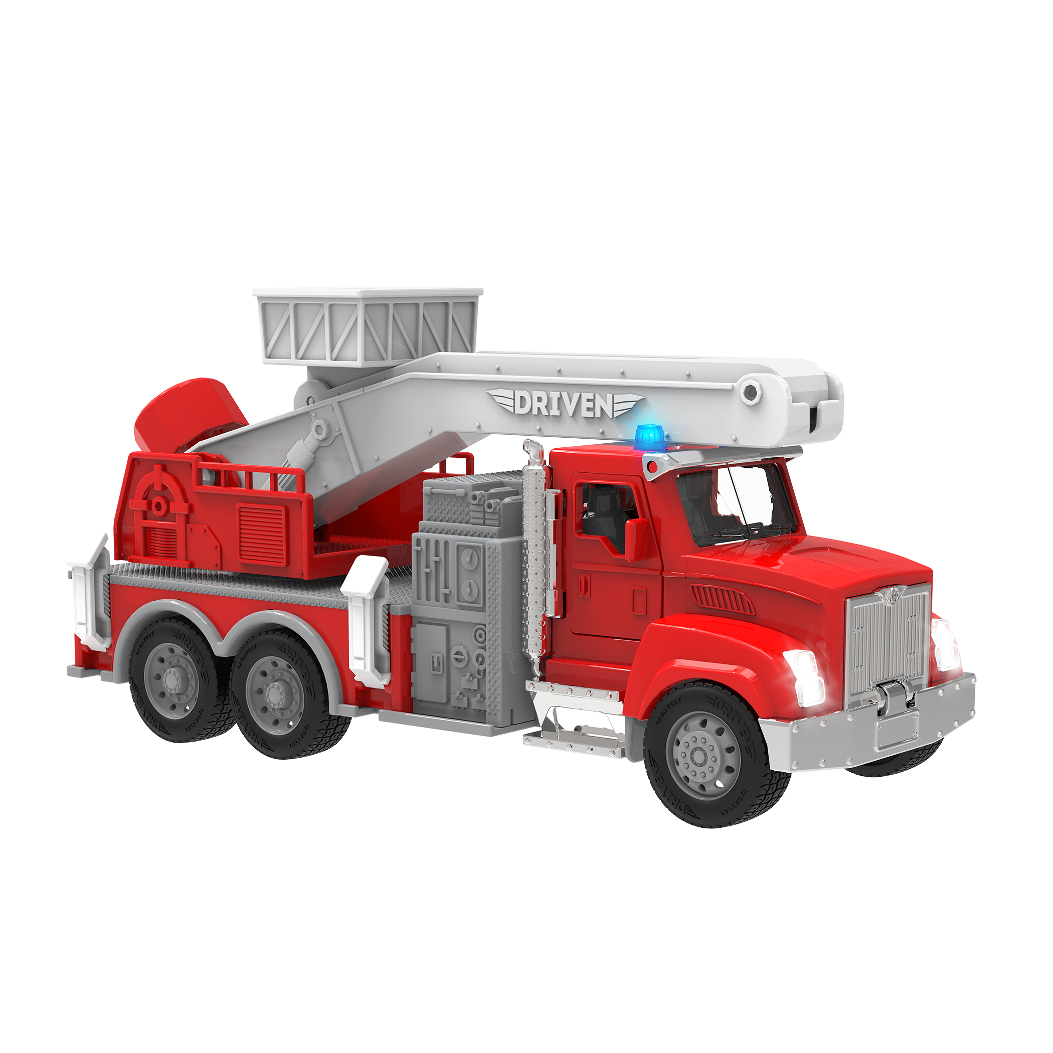 Erkunde die vielen tollen Features dieses coolen Feuerwehrautos von Driven - zum Beispiel die sich fnenden Ten und die Motorhaube, die sich anheben lst! Mit der ausfahrbaren Drehleiter erreichst du jedes Ziel! Rette deine Nachbarn aus einem Gebde und hilf ihnen, in den Korb zu steigen, der sich am Ende der Leiter befindet. Durch deine Rettungsaktion wirst du zum Held der Nachbarschaft. Und f Extraspabeim fantasievollen Spielen sorgt die realistische Kombination aus Licht und Sound!