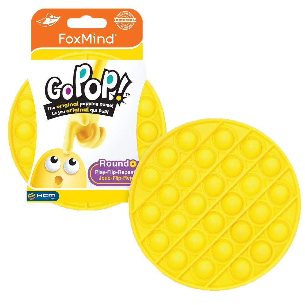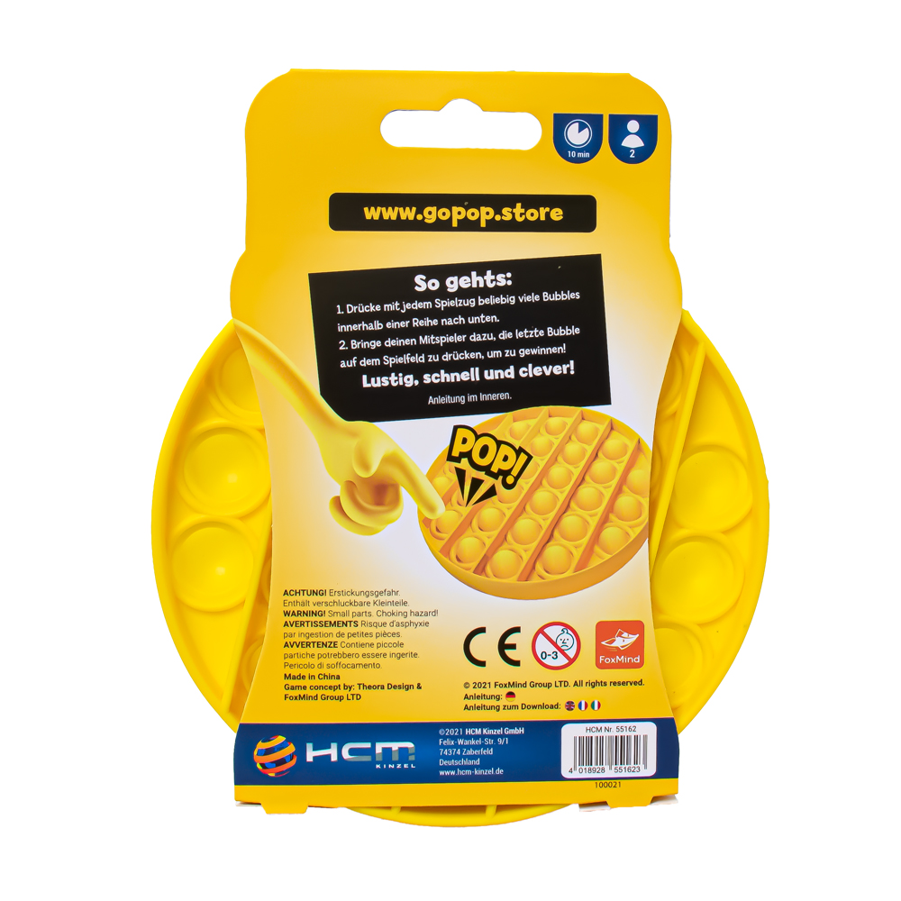 "GoPop™ – The clever popping game! So gehts: Drücke mit jedem Spielzug beliebig viele Bubbles innerhalb einer Reihe nach unten und bringe deinen Mitspieler dazu, die letzte Bubble auf dem gesamten GoPop™ Spielfeld zu drücken. Lustig, schnell und einfach genial! GoPop™ ist das Original Bubble Fidget und ein einfaches und cleveres Logikspiel für 2 Spieler, geeignet für Kinder und Erwachsene. Lasst euch nicht von der einfach aussehenden Form des originellen Bubble-Spiels täuschen. GoPop™ ist das neue Trend Fidget Game! Für GoPop™ gibt es einfache und fortgeschrittene Regeln. Dank der kompakten Größe und des langlebigen Materials habt ihr überall und jederzeit Spaß mit dem grenzenlose Bubble-Spiel GoPop™. Der GoPop™ Roundo ist in drei verschiedenen Farben erhältlich: gelb, lila und türkis"