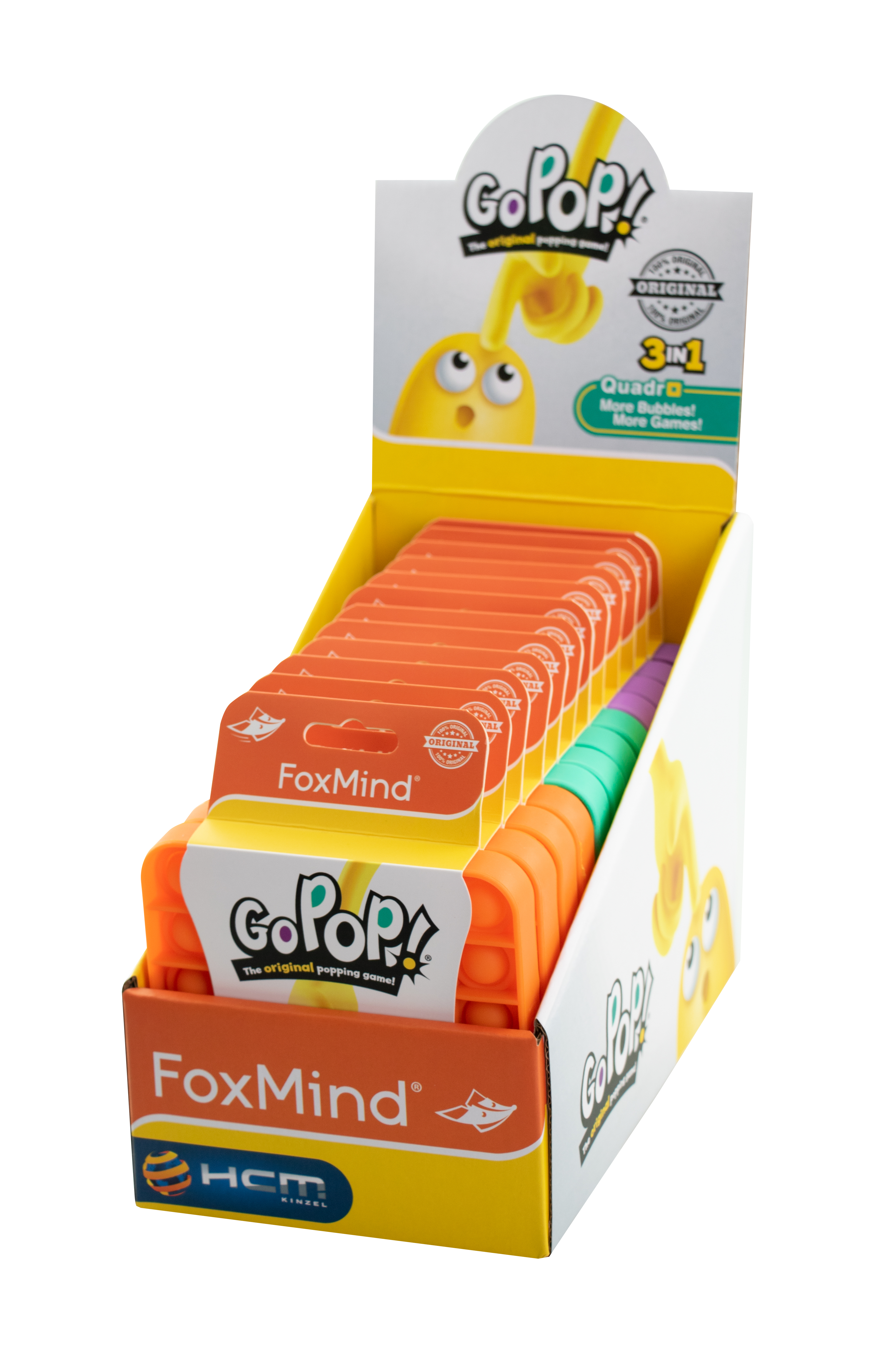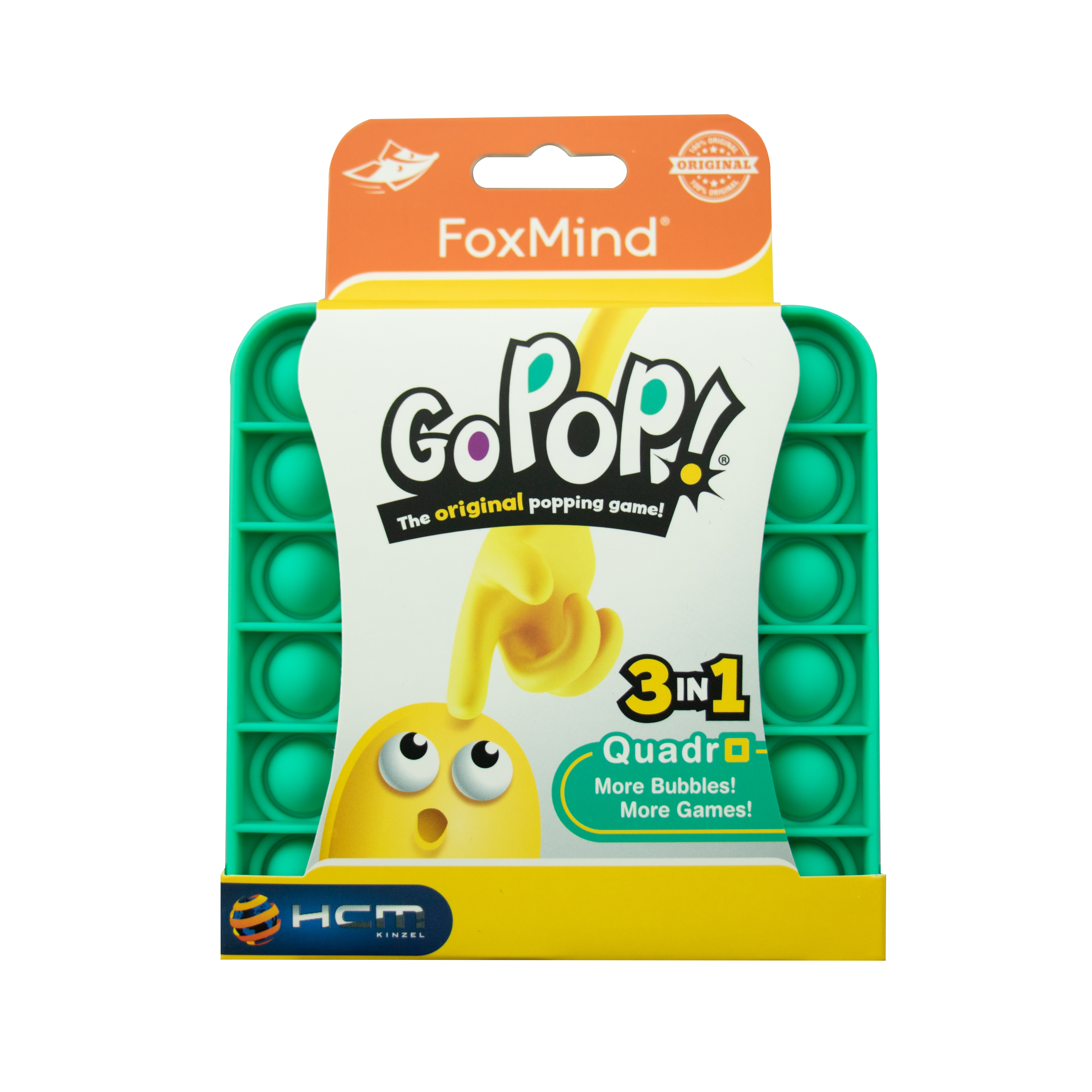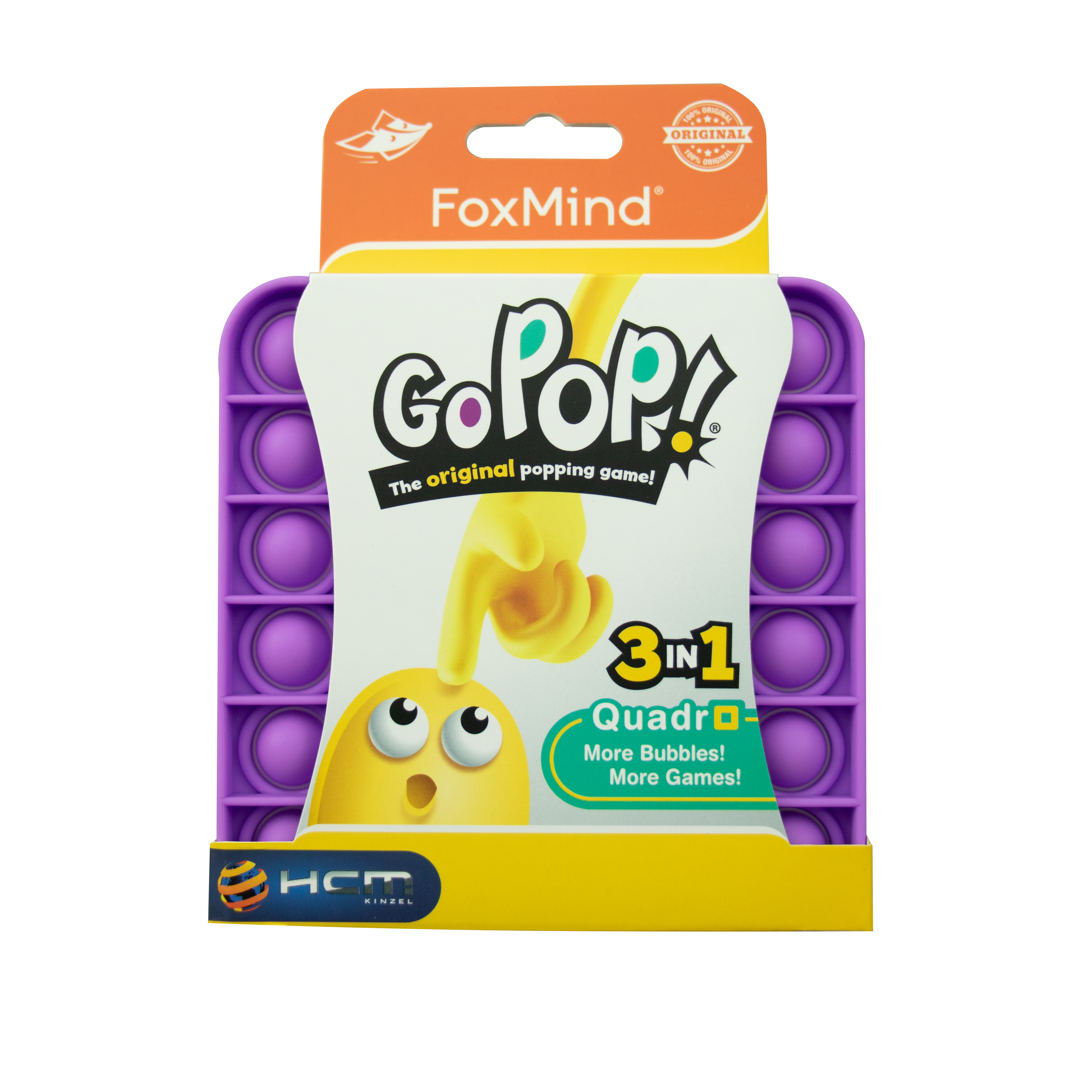 "GoPop™ - The clever popping game! So gehts: Drücke mit jedem Spielzug beliebig viele Bubbles innerhalb einer Reihe nach unten und bringe deinen Mitspieler dazu, die letzte Bubble auf dem gesamten GoPop™ Spielfeld zu drücken. Lustig, schnell und einfach genial! GoPop™ ist das Original Bubble Fidget und ein einfaches und cleveres Logikspiel für 2 Spieler, geeignet für Kinder und Erwachsene. Lasst euch nicht von der einfach aussehenden Form des originellen Bubble-Spiels täuschen. GoPop™ ist das neue Trend Fidget Game! Für GoPop™ gibt es einfache und fortgeschrittene Regeln. Dank der kompakten Größe und des langlebigen Materials habt ihr überall und jederzeit Spaß mit dem grenzenlose Bubble-Spiel GoPop™. Das GoPop™ Quadro ist in drei verschiedenen Farben erhältlich: lila, türkis und orange. "