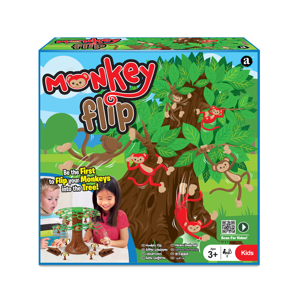 Monkey Flip ist das Spiel der fliegenden, schwingenden, akrobatischen Affen! Hilf unseren Affenfreunden, ihr Zuhause im hohen Baum zu erreichen. Benutze das Katapult, um sie durch die Luft und in die te fliegen zu lassen! Wer als Erster alle seine Affen im Baum hat, gewinnt. Ein einfaches und fantastisches Spielkonzept f alle Altersgruppen.