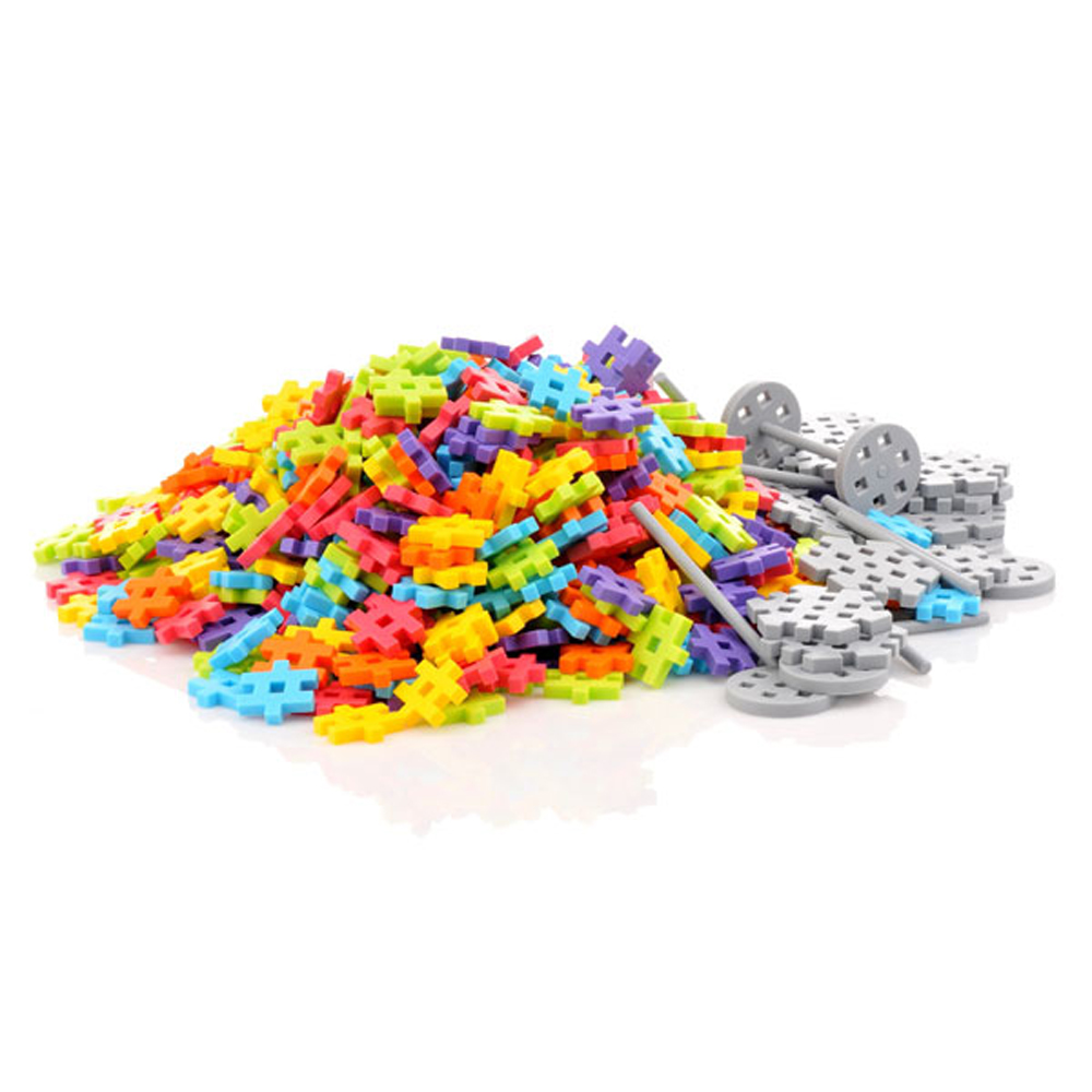 Inhalt: 370 Basic Bausteine, 12 Rad-Elemente, 12 6-Eck-Elemente, 6 Ste, in 6 Farben sortiert