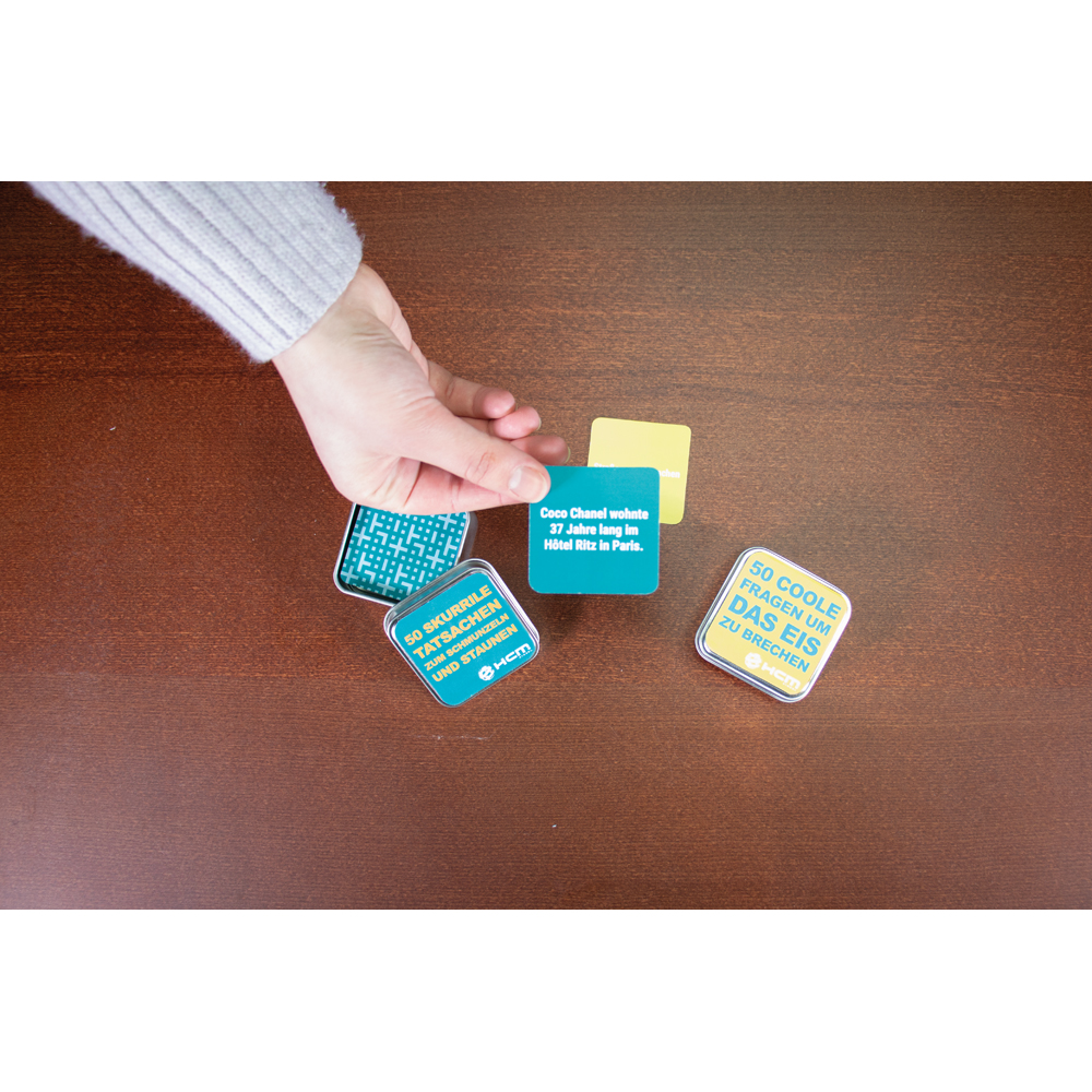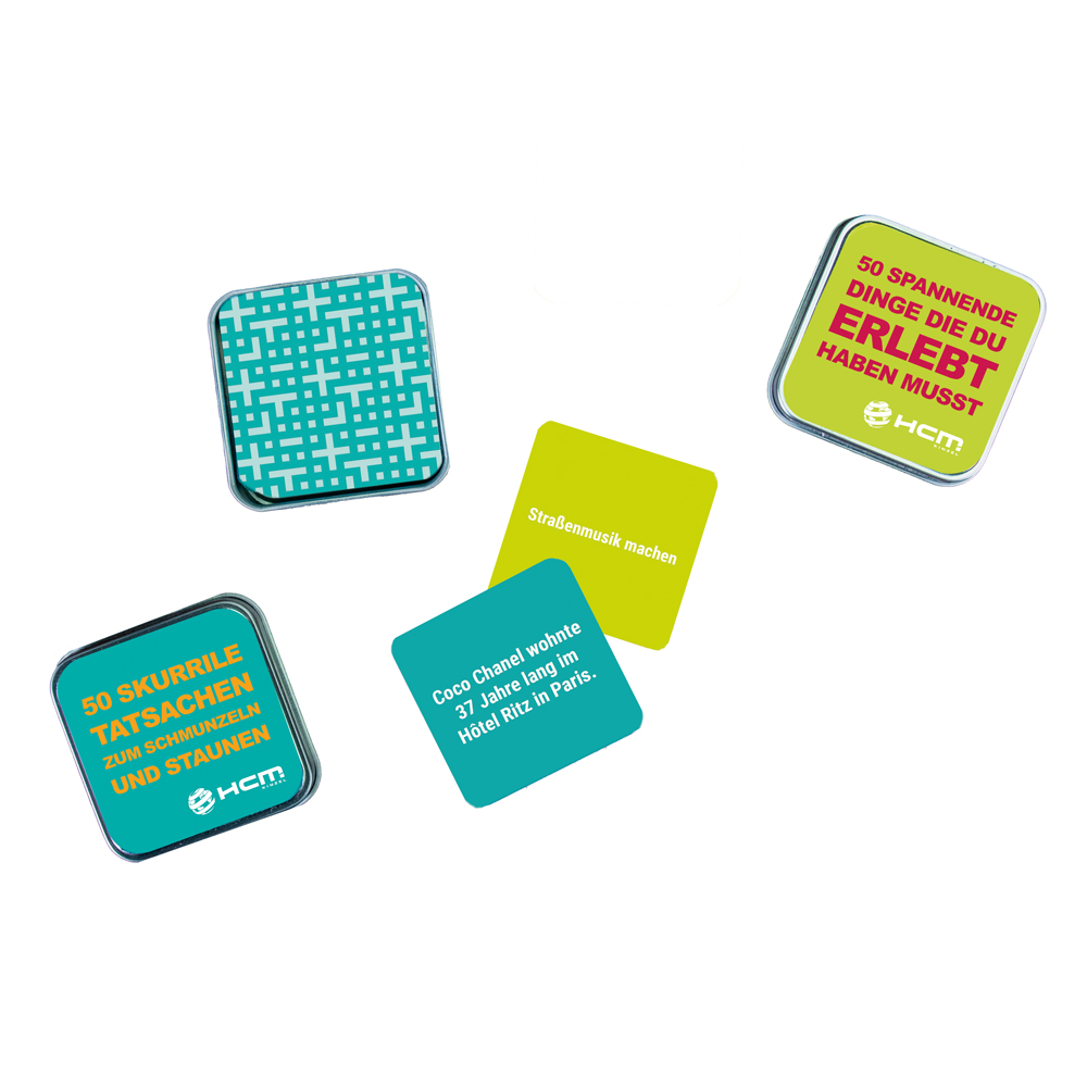 Das Display entht 8 originelle Kategorien f jede Gelegenheit. Das perfekte Mitbringsel, passt in jede Handtasche, ideal f unterwegs. F die nhste Party oder einfach einen gemlichen Abend unter Freunden mit diesen Spielen, Rseln und lustigen (Scherz-)Fragen werden sich deine Gte blendend amieren! Knt ihr erraten, welche verrkten Mythen wahr sind und welche frei erfunden? Welche 50 Dinge sollte man zumindest einmal im Leben ausprobiert haben? Die Vielzahl an Karten bietet unterhaltsame Gesprhsthemen f jeden so wird garantiert niemandem in der Runde langweilig!