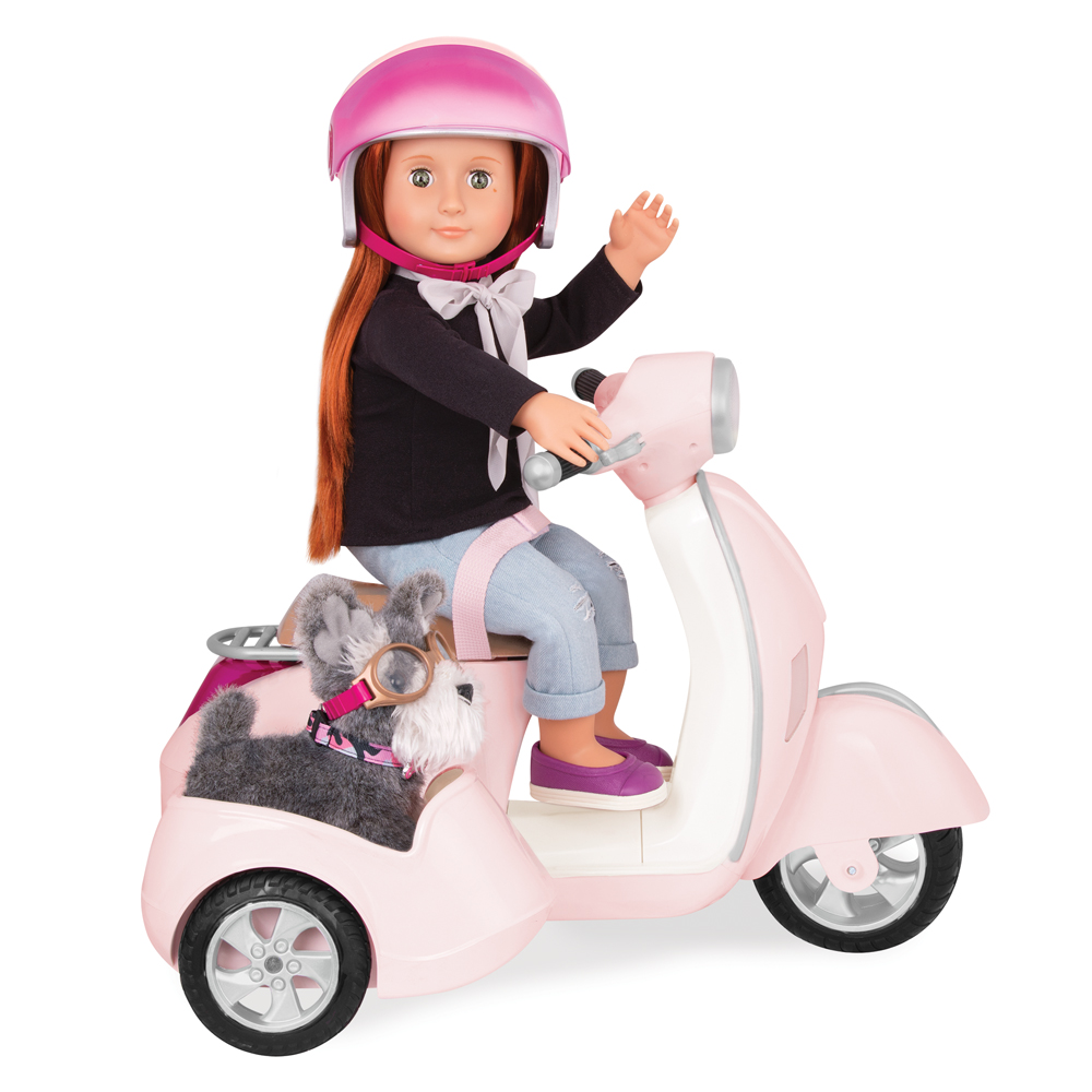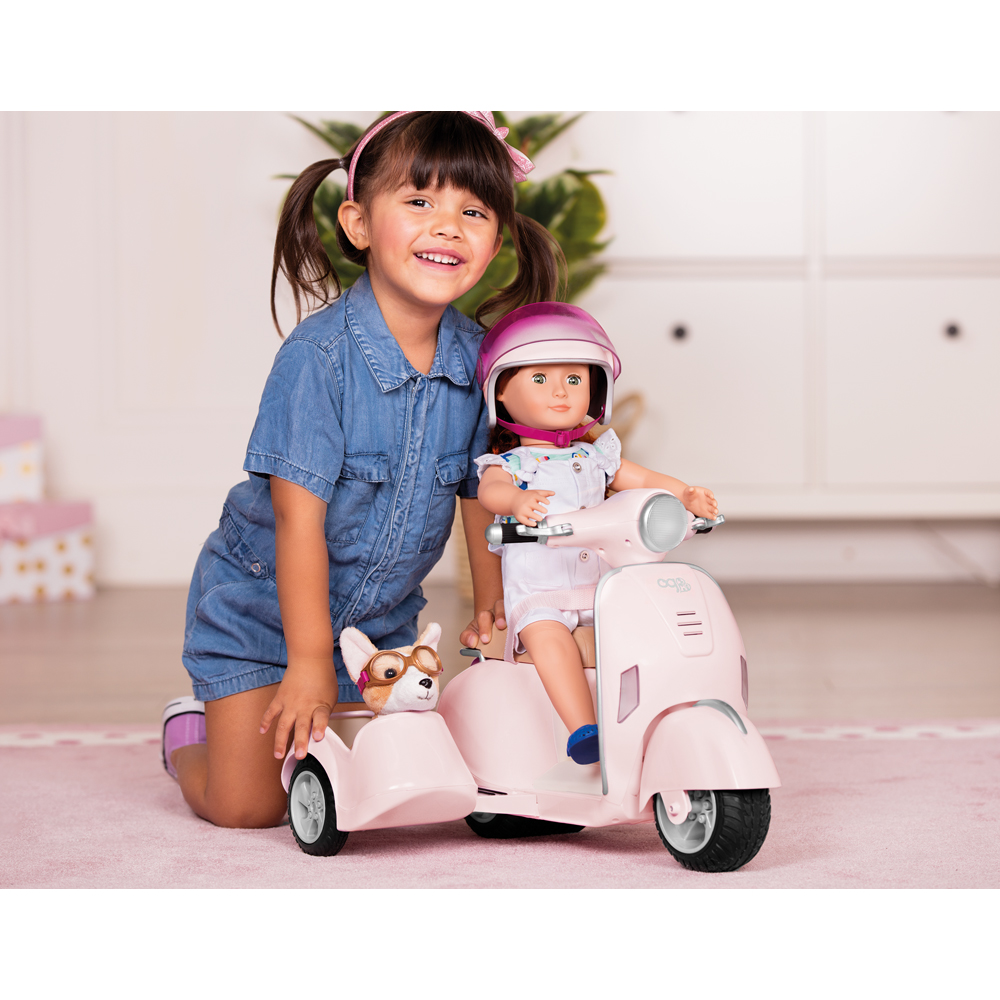 Dein liebster Begleiter kann sich auch endlich Wind um die Nase wehen lassen mit dem Motorroller mit abnehmbarem Seitenwagen mit Helm. F Puppen mit einer Gre von 46 cm geeignet. Funktionen: Gaszug mit Motorsound, Hupe mit Funktion, Beleuchtung am Fahrzeug, Puppe ist nicht im Set enthalten.