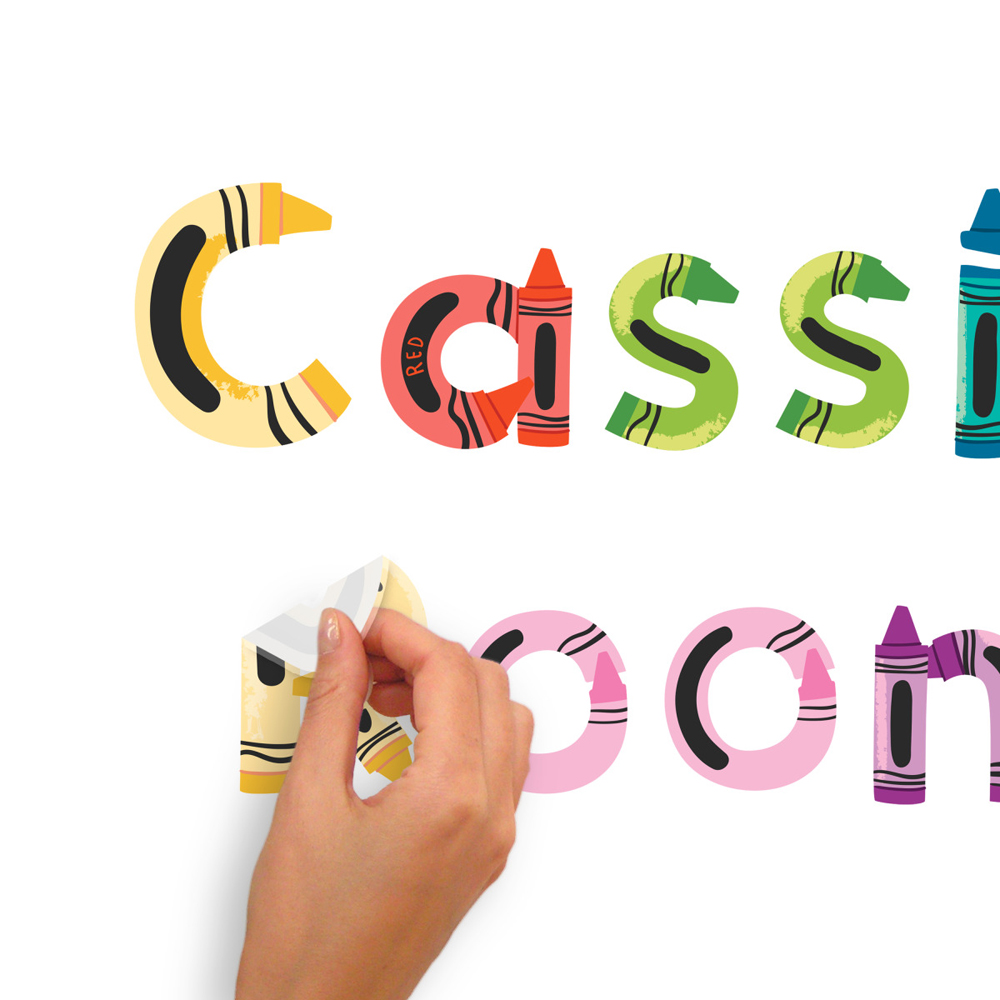 Fdere die Fantasie junger Kfe mit den unzligen Mlichkeiten, die mit den leuchtend bunten Wachsmalkreiden geschaffen werden knen, die in Buchstabenform die Namen, Slogans und Zitate anpassen, die dein Zuhause personalisieren mit den A bis Z Crayon Alphabet Wandtattoos von RoomMates, die sich einfach abziehen und anbringen lassen.