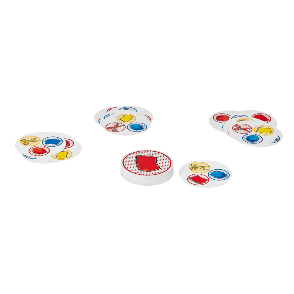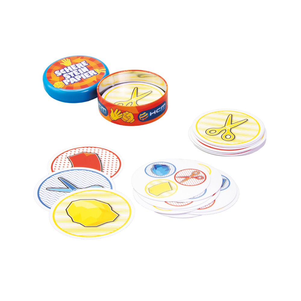 Dieses schnelle Action-Kartenspiel basiert auf dem allseits beliebten Spiel Schere-Stein-Papier. Behalte die Karten mit den Schere-, Stein und Papier-Symbolen genau im Blick. Versuche so schnell es geht, die Symbole der gleichen Farbe zu erkennen und forme mit deiner Hand blitzschnell das entsprechende Symbol, um deine Mitspieler zu schlagen. Wenn die beiden Symbole identisch sind, klatsche in die Hde. Ein beliebtes Spiel in neuer Variante - kombiniere schneller als deine Mitspieler, um so viele Karten wie mlich zu sammeln!