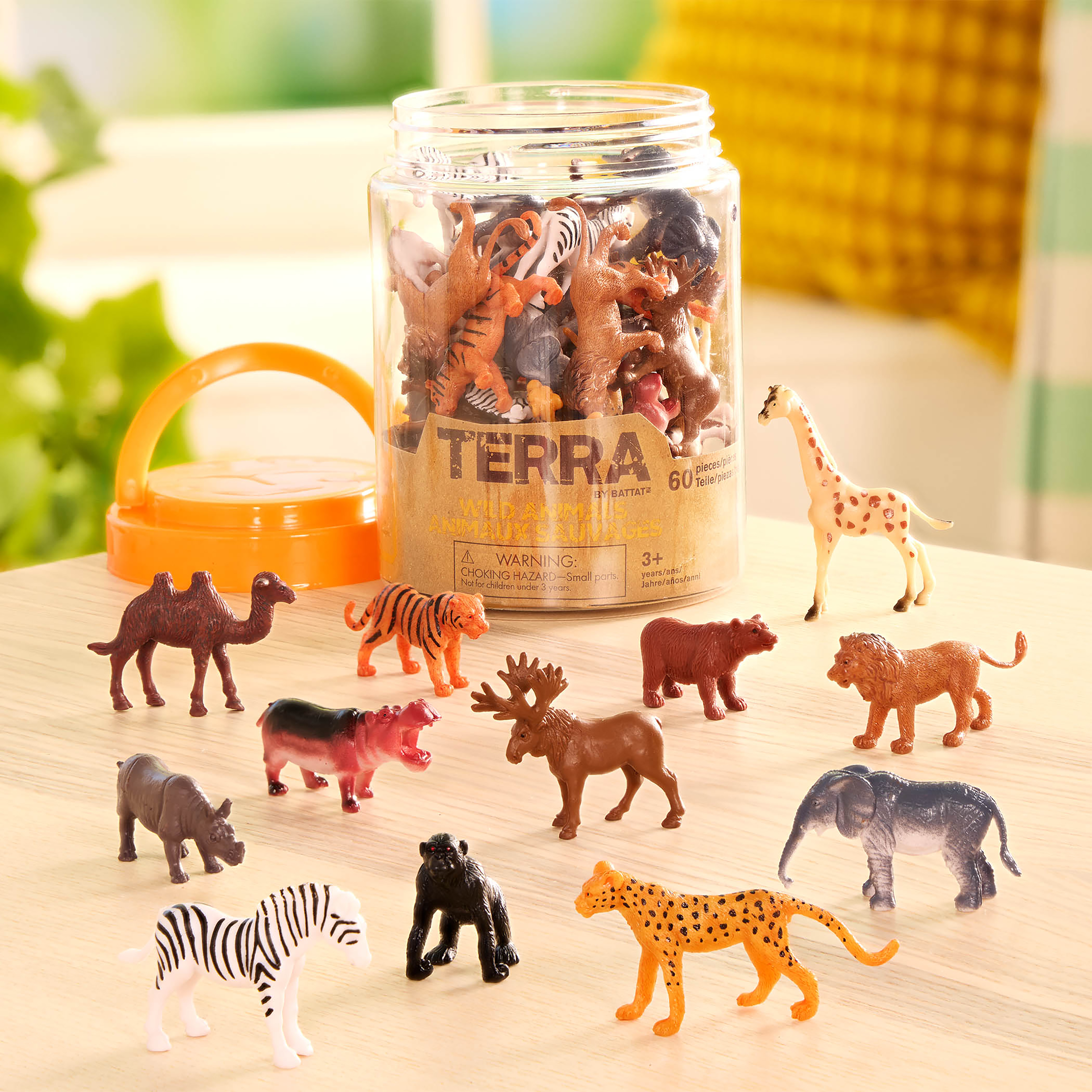 Gestalte eine wilde Safari-Szene mit 60 beeindruckenden Wildtieren! Diese eignen sich hervorragend als Spielzeug f Kinder, die etwas er Tiere und die Natur lernen wollen. Die Dose beinhaltet Giraffen, Ben, Geparden, Nashner, Len, Tiger, Zebras, Kamele, Nilpferde, Gorillas und sogar Elche! Die kleinen Tierchen haben eine natliche Pose und eine realistische Farbgebung, die schon die Kleinsten ins Safari-Fieber versetzt.