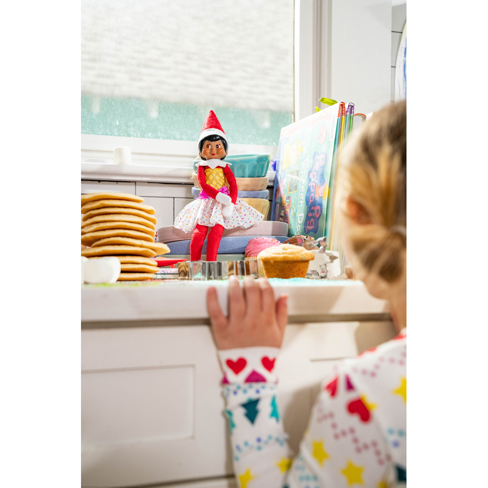 "Bereite dich auf eine zuckersüße Weihnachtszeit vor! Mit dem The Elf on the Shelf® - Claus Couture® Eiscreme Partykleid wird dein Scout Elf zum strahlenden Mittelpunkt jeder Feier. Dieses farbenfrohe Kleid mit bunten Streuseln, einer eleganten pinkfarbenen Schleife und glitzernden goldenen Fäden bringt den Charme eines Eiscreme-Traums direkt in dein Zuhause.