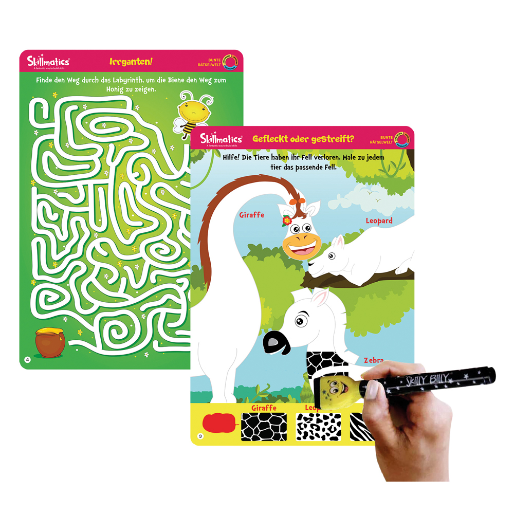 Beinhaltet 6 doppelseitige Matten, 1 Skilly Billy Stift, 1 Wischlappen, 1 Willkommensbrief, 1 Skilly Billy Urkunde